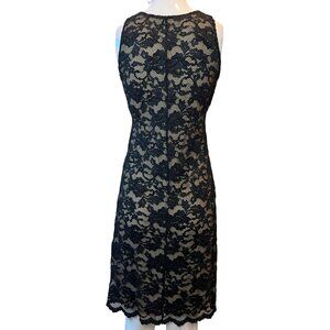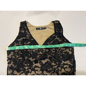 Belly Basics Sheath Dress Floral Lace Overlay V-Neck Sleeveless Black Size P