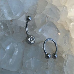 Surgical stainless steel belly button rings. Perfect condition, one with rhinestone.