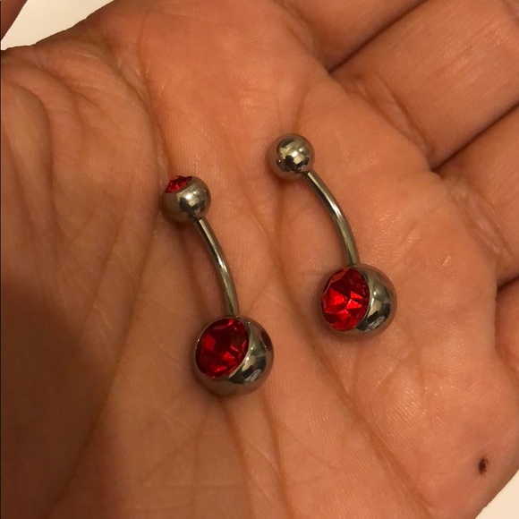 Two red belly button rings. New never used. Metal unknown