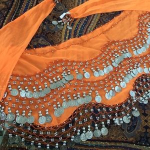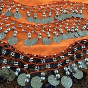 Belly Dance Wrap belt tie in the back or on side. Wrap length is 60 " .