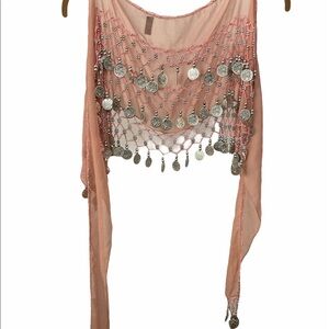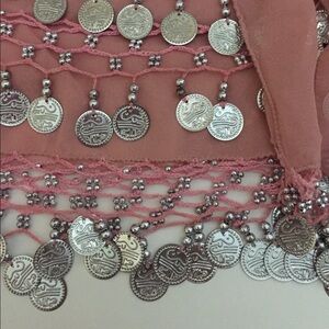 Decorated with silvertone coins & beads (all coins & beads intact)