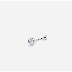 14G 316L surgical stainless steel CZ double Gem Belly Button Ring. Bar Length is 3/8" (10mm). Accented in cubic zirconia. Brand New. Color Silver Very Sparkling.