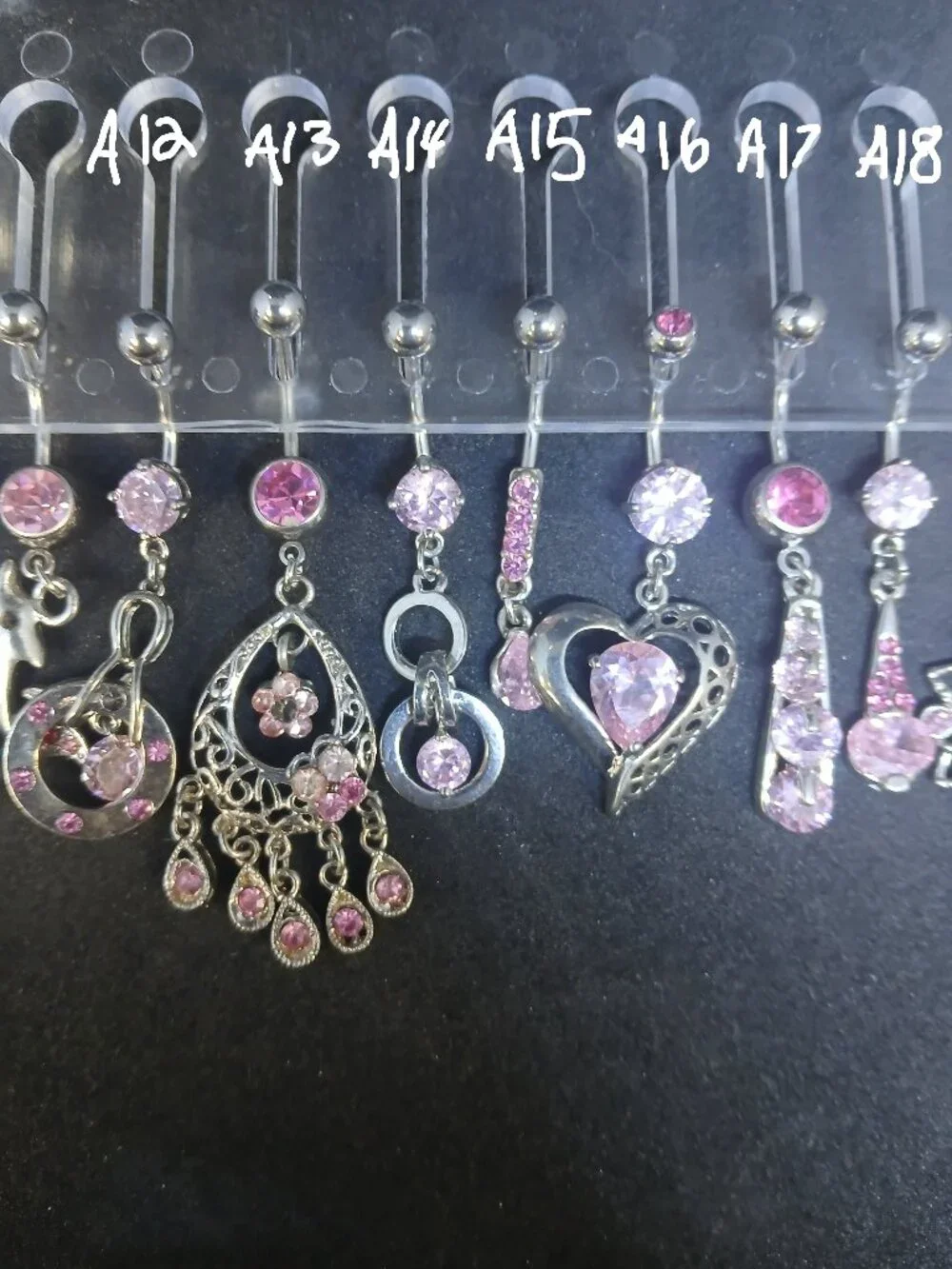 Belly rings, $20 each or 3 for $50. Please reference the photo and specify the piece(s) you'd like (e.g., A29 or B13).