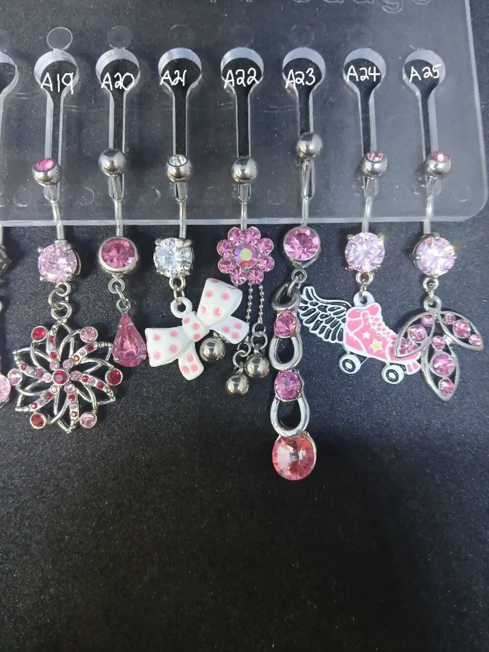 Belly rings, $20 each or 3 for $50. Please reference the photo and specify the piece(s) you'd like (e.g., A29 or B13).