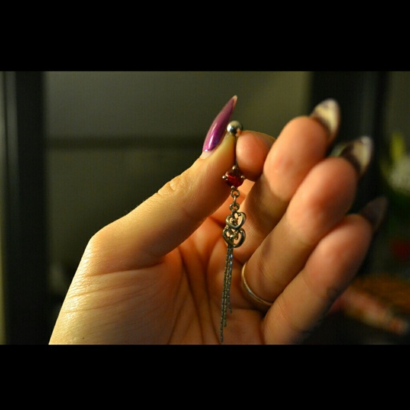 14g dangle belly ring with red gemstone and hearts. Never worn