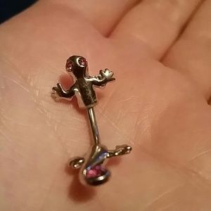 Lizard belly button ring. Pink stone eyes and stone in the tail. very cute!