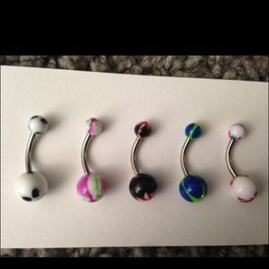 Left to right. Smiley face, music note, red star, green star, butter fly.