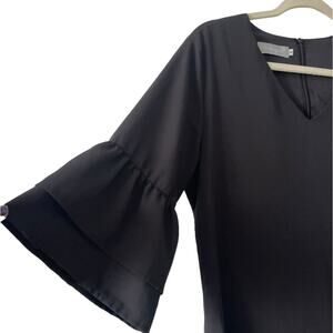 Belongsci Black Dress Size Medium Ruffle Bell Sleeve Shift V-neck