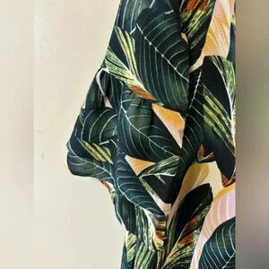 Belongsci Floral Bell Sleeve V Neck Shirt Dress - M