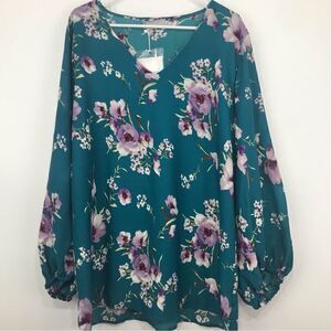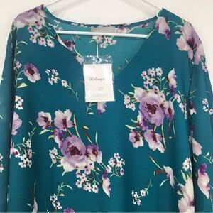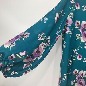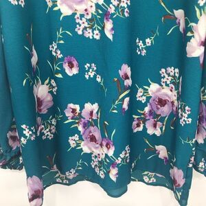 Belongsci Teal Pink Floral Print V Neck Spring Blouse NEW