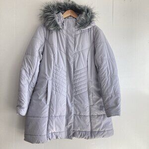 Below Zero Anorak Jacket Womens Gray Winter Coat Quilted Full Zip Hooded Sz PL