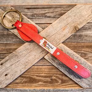 Belsnickel Eagle Charm Red Leather 3 Brass Bell Strap Door Hanger, 14.5”H