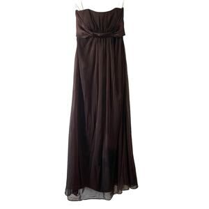 Belsoie Brown Strapless Gown Size 4 Empire Waist Flowy Formal wedding