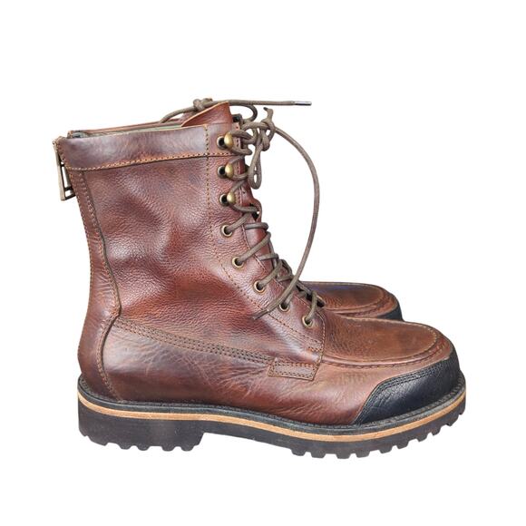 Belstaff Brown Leather Moc Toe Boots Back Zip EU 42.5 Men's 8.5 Work Boots
