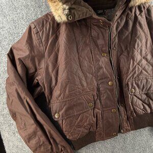 Belstaff Gold Label Waxed Jacket Fur Hood Trim Size 44 Brown Italy Pockets Adult