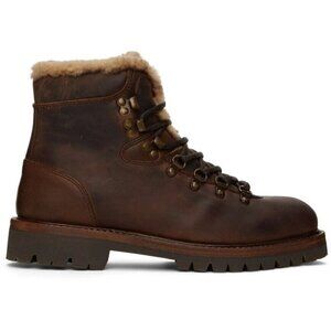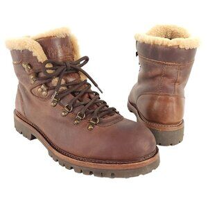 Belstaff Gorge Hiker Boots Size 45 US 12 Mens Brown Leather Shearling $450