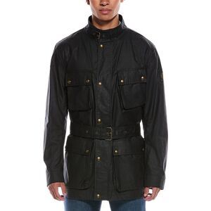 Please note: Size selections are European. For US conversions, please reference the size chart. Color/pattern: dark navy Approximately 33in from shoulder to hem Model is 6'1 and is wearing a size 54. Measurements may vary slightly by size. Design details: waxed design, buckle strap at collar, four front pockets, belted waist, snap cuffs and printed flannel lining Zipper and snap front Medium weight 100% cotton Sleeve Lining: 100% viscose Spot clean only Imported