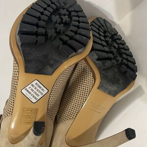 Belstaff Suede Boots Peep Toe Buckle Stiletto Heeled Booties Beige EU 40 US 9