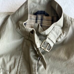 Quality utility, water-repellent and wind-repellent jacket from Belstaff. Waxed cotton material is wind, water resistant. Lots of practical pockets. Size 40. Fits US size 4-6. Color army green. Great pre-owned condition! No flaws. Only worn few times.