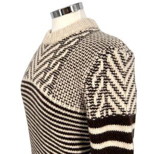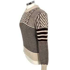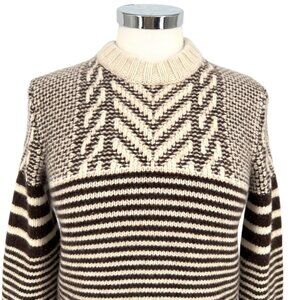 Belstaff Womens Chevron Stripe Italian Wool Sweater Brown Cream Size Medium