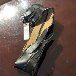 Black leather BCBG Belt with 2 buckle straps. NEVER WORN