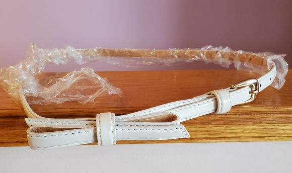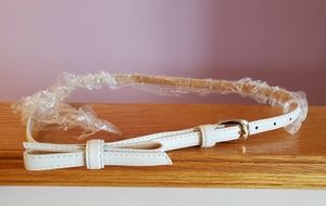 NEW White belt with gold buckle. 36 inch /92cm long. Brand new. Still in wrapper, but no tag. Width 0.60 inch/ 1.5cm. With bow in front.