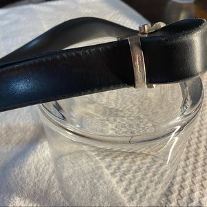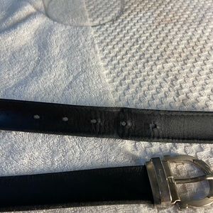 Ferragamo leather belt used with Engraved Ferragamo logo on the inside and outside of the buckle. It has 5 holes and fits a waist of 28 through 31