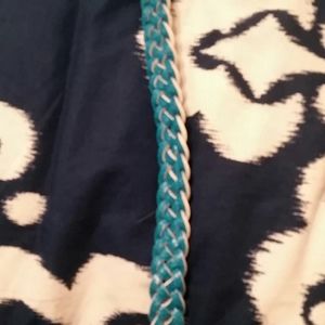 Imitation Leather. Woven. Torquoise. Gold buckle.