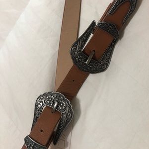 Never used. Front double buckle belt. Brown and metal. Size L/XL.