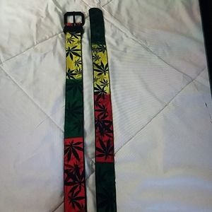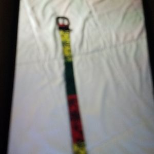 Mens belt red green and yellow size 40 Bonded leather man made material. Made an extra hole in the belt shown in picture