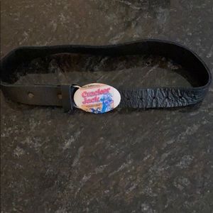Vintage decoupage “Cracker Jack” belt buckle with leather size 25 belt. (Buckle has slit chip in the glue ~ purchased this way ‘cause I’m a Cracker Jack lover and it was the only one available)