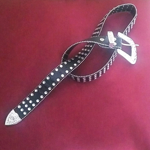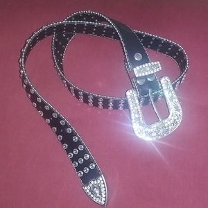 Women's rhinestone belt fashion western cowgirl bling studded design leather belt. 1-1/4"(33mm) wide.