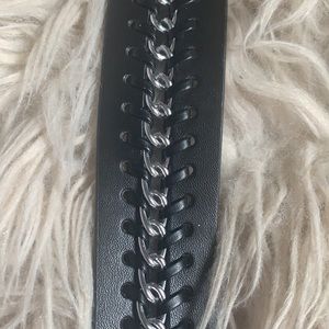 This is a braided type belt with leather and silver accents