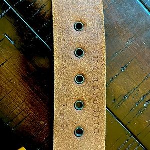 Banana Republic size small genuine leather with gold studs design/ strap is 2 inches thick and 40 inches long not counting the buckle/ worn once, in excellent beautiful condition!