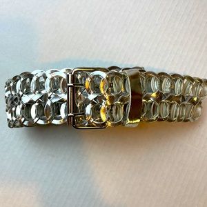 This cute belt is size XL is silver coated material the buckle is silvertone. It’s not real leather but it would still make a great accessory to your outfit