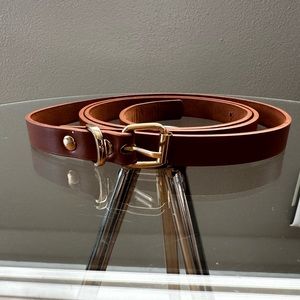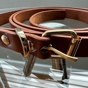 Womens Thin Belts Skinny Faux Leather Belt with Gold Alloy Buckle