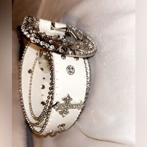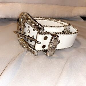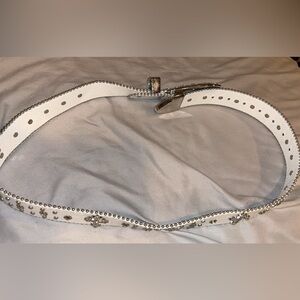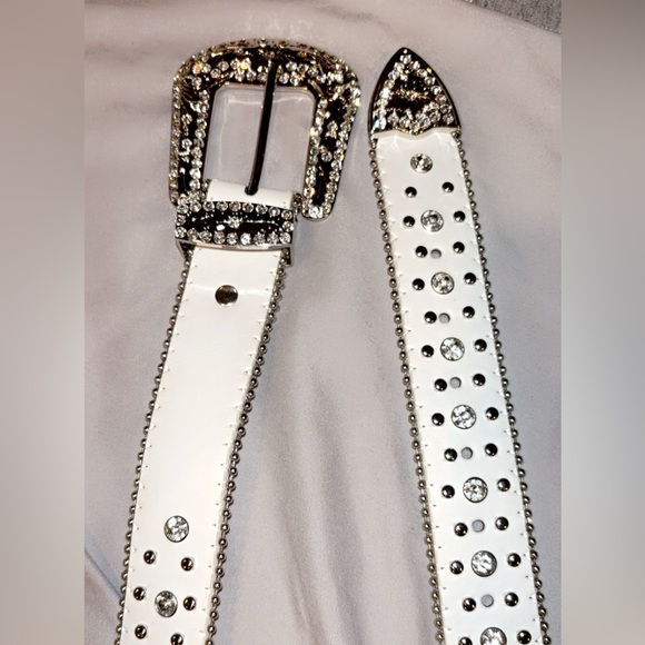 White and silver belt super cute bigger in size didn’t fit so never really been used