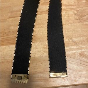 Belt stretch 24 inches long that stretches. It is 1 5/8 wide and beautiful gold metal