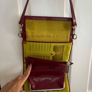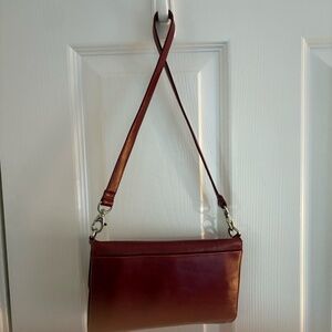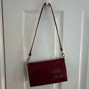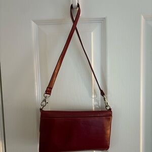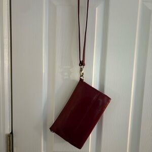 HOBO International Dark Red belt bag/purse/wallet/clutch/wristlet - all-in-one. Works as clutch, shoulder bag, belt bag. Deep red leather, magnetic closure.