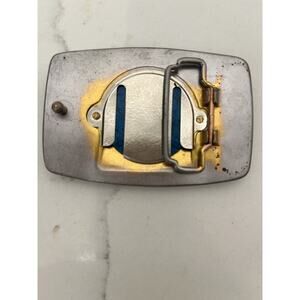 Belt Buckle Gold Tone Embossed Faux Turquoise Stone Southwestern Cowboy Cowgirl
