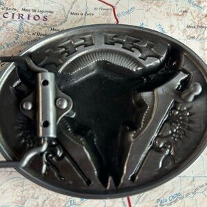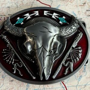 Silver color cow skull belt buckle with turquoise stone inlay, 2.6 oz weight, 3.9" diameter #westernvibes
