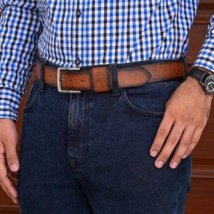Our belts exemplify a fusion of quality and innovation. Crafted from Premium FULL GRAIN Buffalo Leather sourced from the Single Butt Side, they ensure consistent thickness and durability. The Natural Milled Leather undergoes a tumbled and drum-dyed process, creating a softening bubble effect over the full grain.