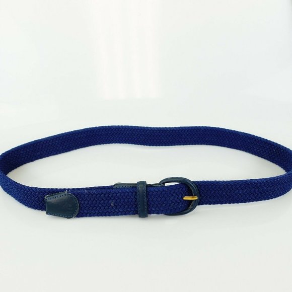 Men's Leather Blue Braided Cloth Fabric Belt LARGE Formal Party D-Ring Bucklee Boho Features - Made of fabric, Leather D-Ring buckle, Braided style