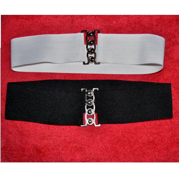 Lot of Two Black and White Belt Retro Vintage Elastic Nurse Belt Stretch Classic pin up style Silver Clasp 2. 1/2 Inches Wide vintage 1950's style comes with high quality alloy buckle,give your clothes a more stylish look Matches Most Clothing: Suitable for Vintage Dresses Skirts Shorts Panst formal or casual wear ect.. Sizes Small Length 26/32.. Medium Length 28/34.. Large Length 30/36.. XLength 32/38..