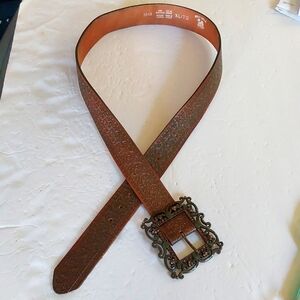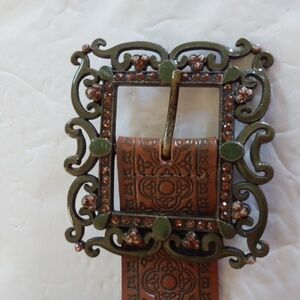 Belt Shak Premium leather Brown TOOLED Crystal Buckle Belt Sz.XL