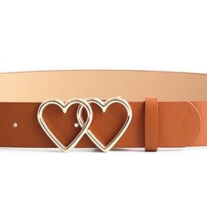 Belt Vegan Leather Camel Tan NEW 27"-35" Gold Tone Double Heart Total 40"