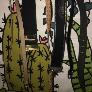 Two tan belts and 3 black. Rarely used and In good condition. Fits sizes medium to large. π