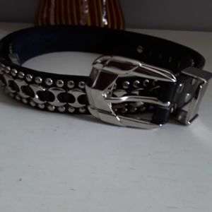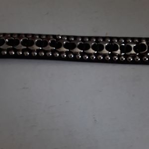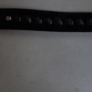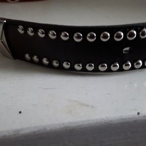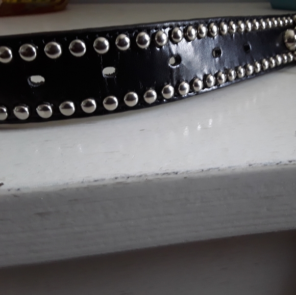 Black leather belt with chome accents