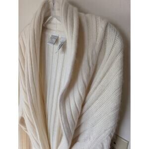 Emma James cardigan, Liz Claiborne sweater, belted cardigan, cream wrap sweater, rabbit hair cardigan, angora blend sweater, cozy knit, ribbed cardigan, quiet luxury sweater,
