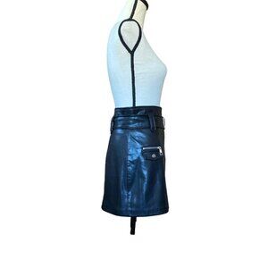 • High waited faux leather biker style miniskirt with oblique zipper and pockets